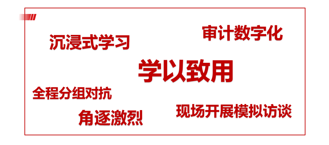 2024年4月8-12日,一場以“沉浸式經濟責任審計體驗營”為主題的培訓活動火熱開課。本次培訓旨在提升審計人員在經濟責任審計方面的專業能力和實戰經驗,采用多種創新教學方法,包括現場審計系統實操、審計項目實戰演練、角色扮演分組對抗和審計項目復盤等,為審計人員提供了一次全新的學習體驗。
